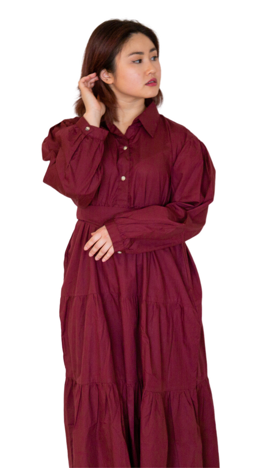Brandy Cotton Maxi Petite Dress With Sleeves