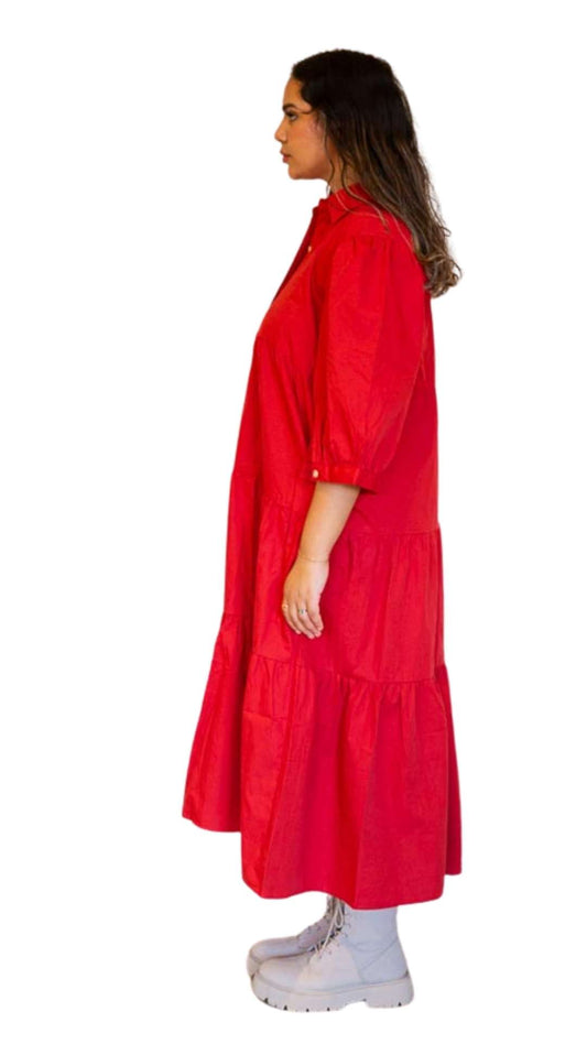 Jasper Ruffled Half Sleeve Shirt Collar Midi Dress