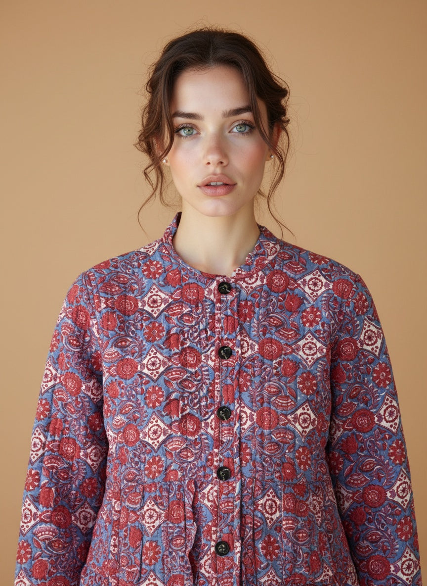 A beautifully quilted, 100% cotton reversible jacket featuring delicate artisan block printing, dreamy block print florals, and a flattering lightweight fit. Two stunning looks in one, crafted by skilled artisans using centuries-old techniques. A sell-out favourite, now back for the holidays. 💖