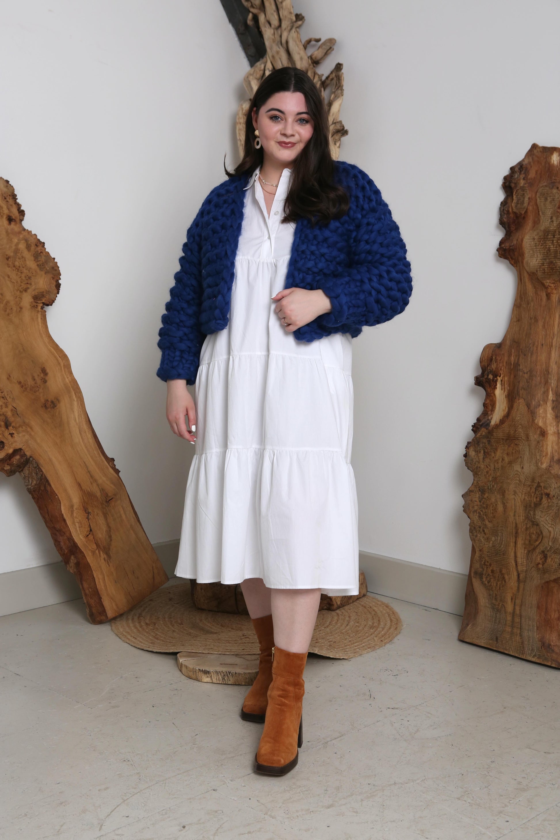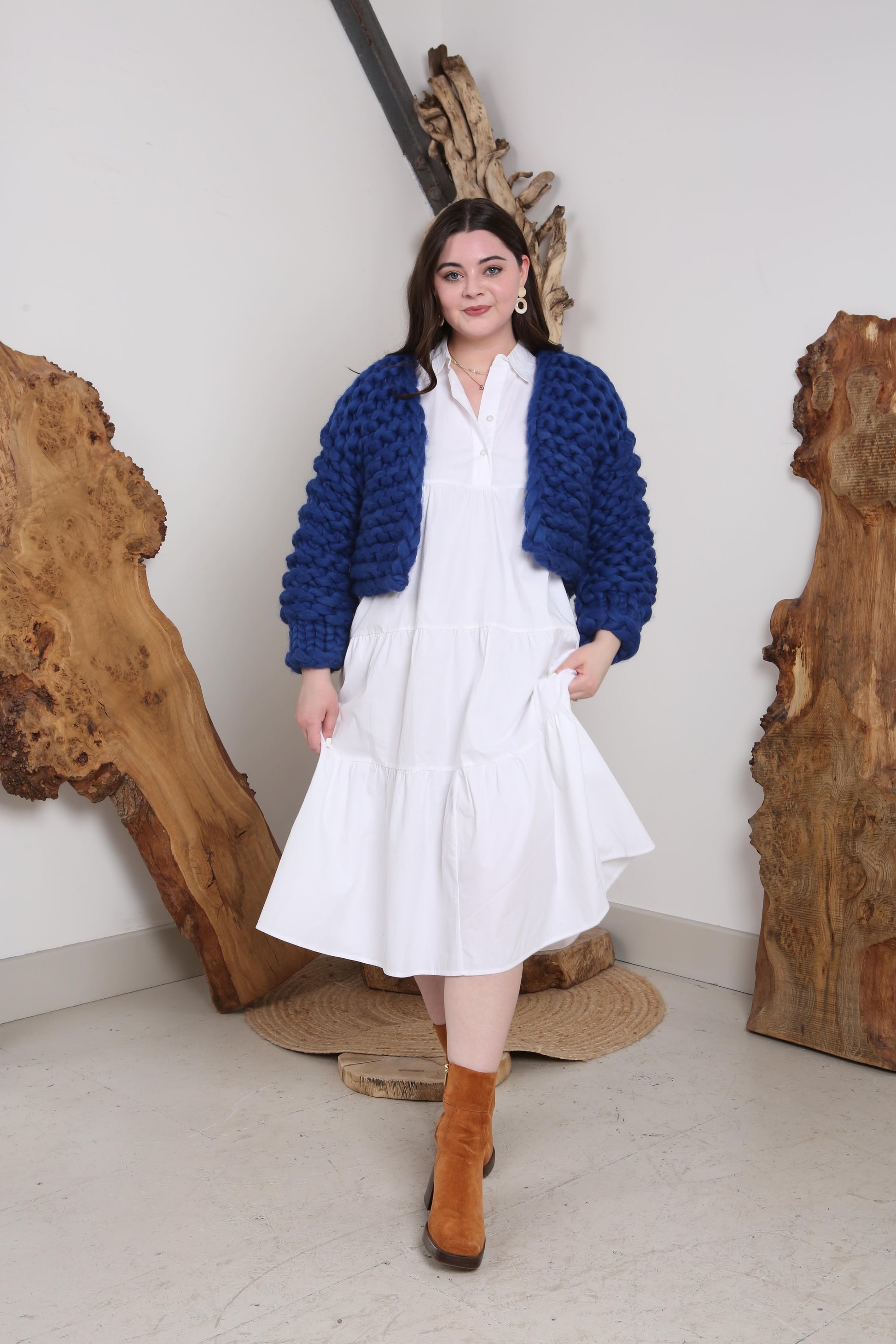 By owning this cardigan, you’re not just adding a timeless piece to your wardrobe; you're also supporting a community of talented women knitters. Each cardigan is made with positive energy, meticulous craftsmanship, and care.