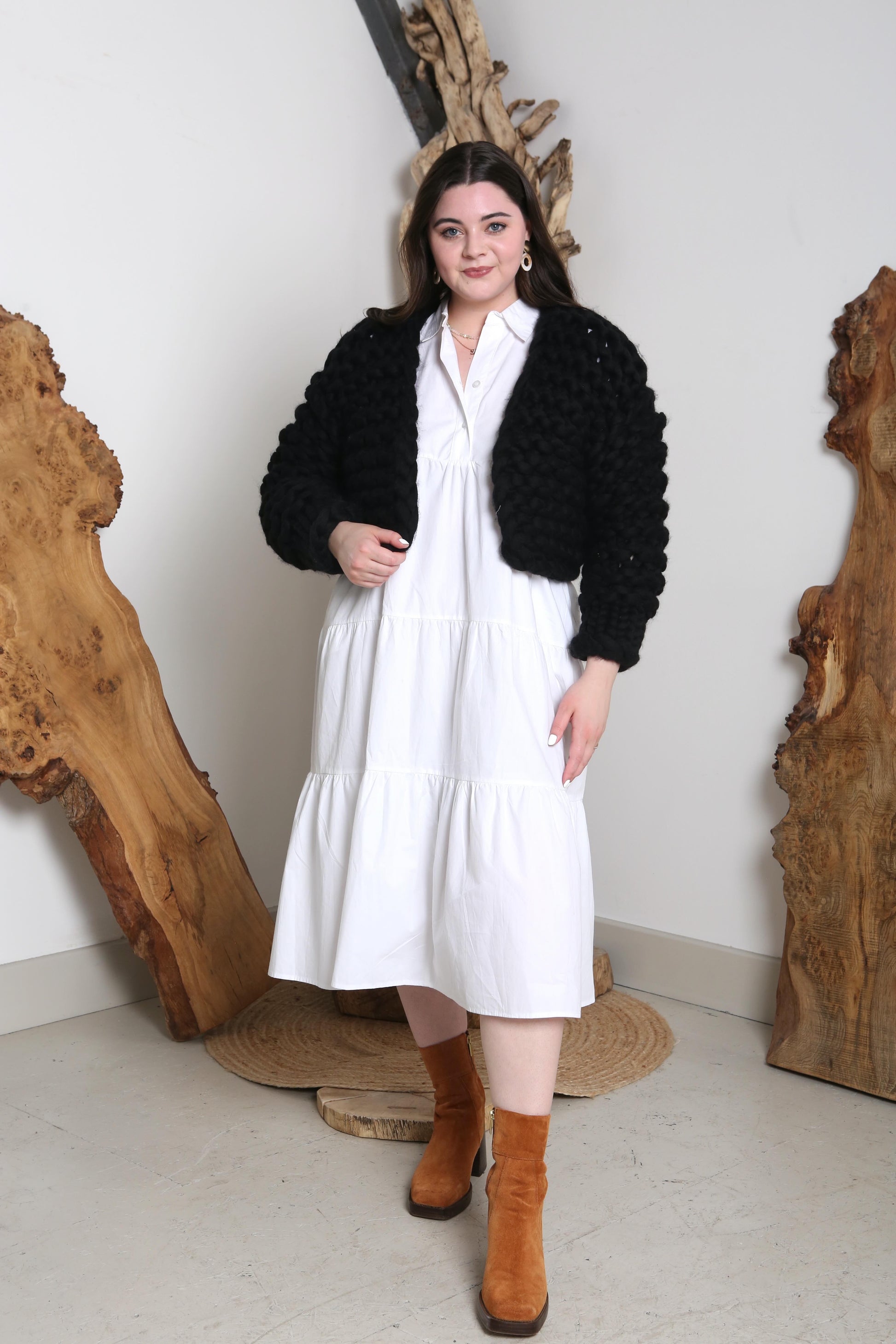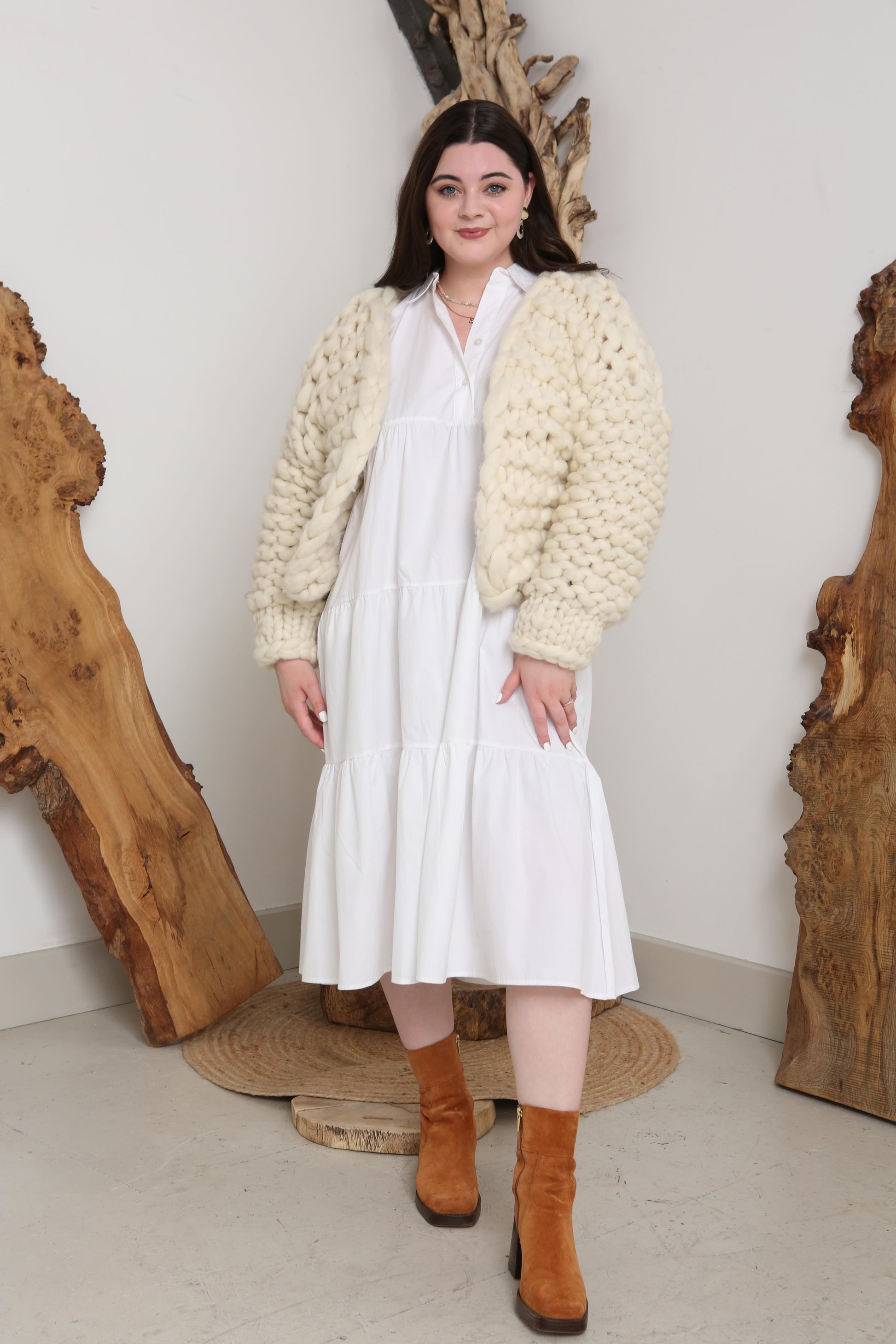 - Chunky Knit Cardigan: Hand-knitted with premium, soft wool for ultimate warmth.