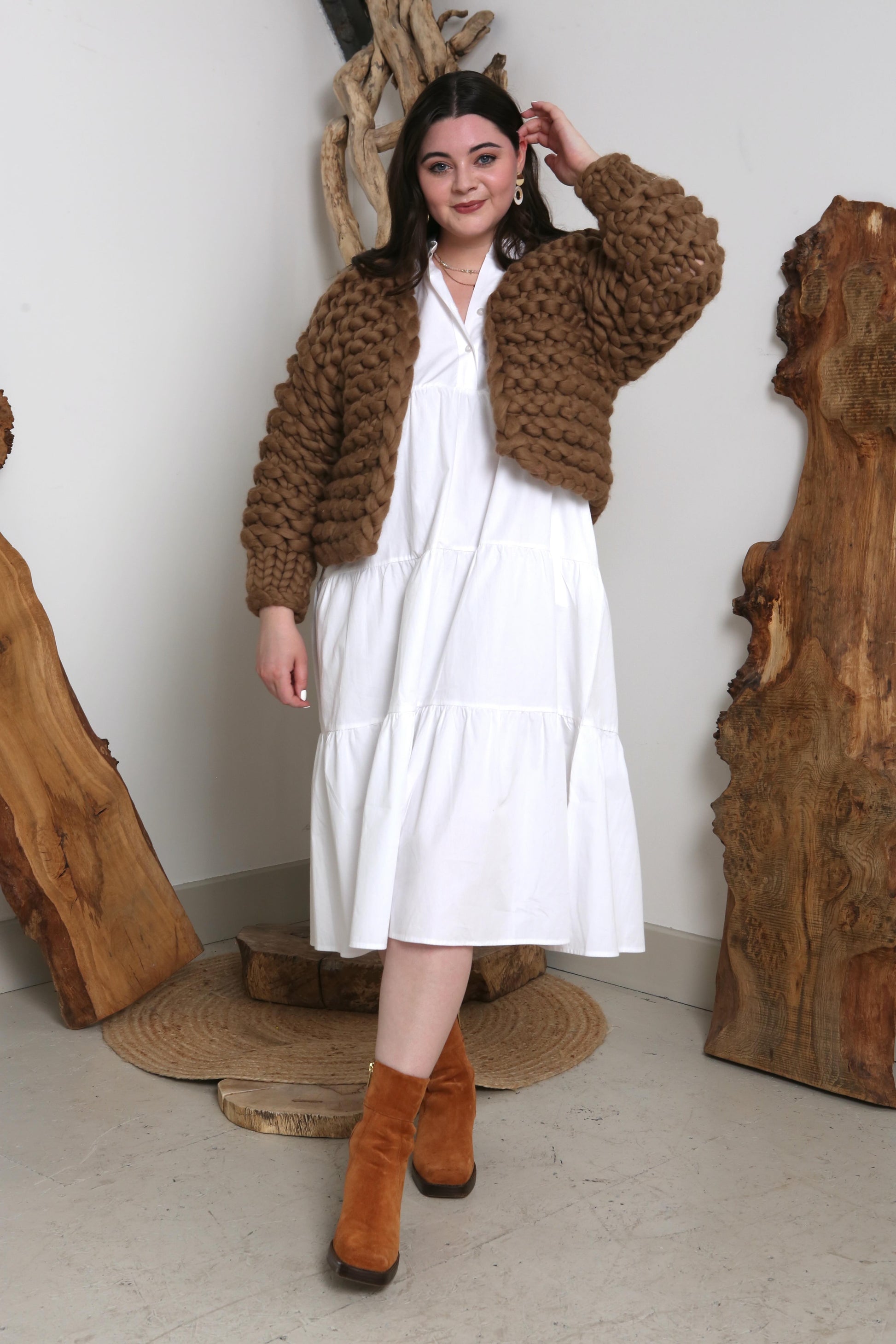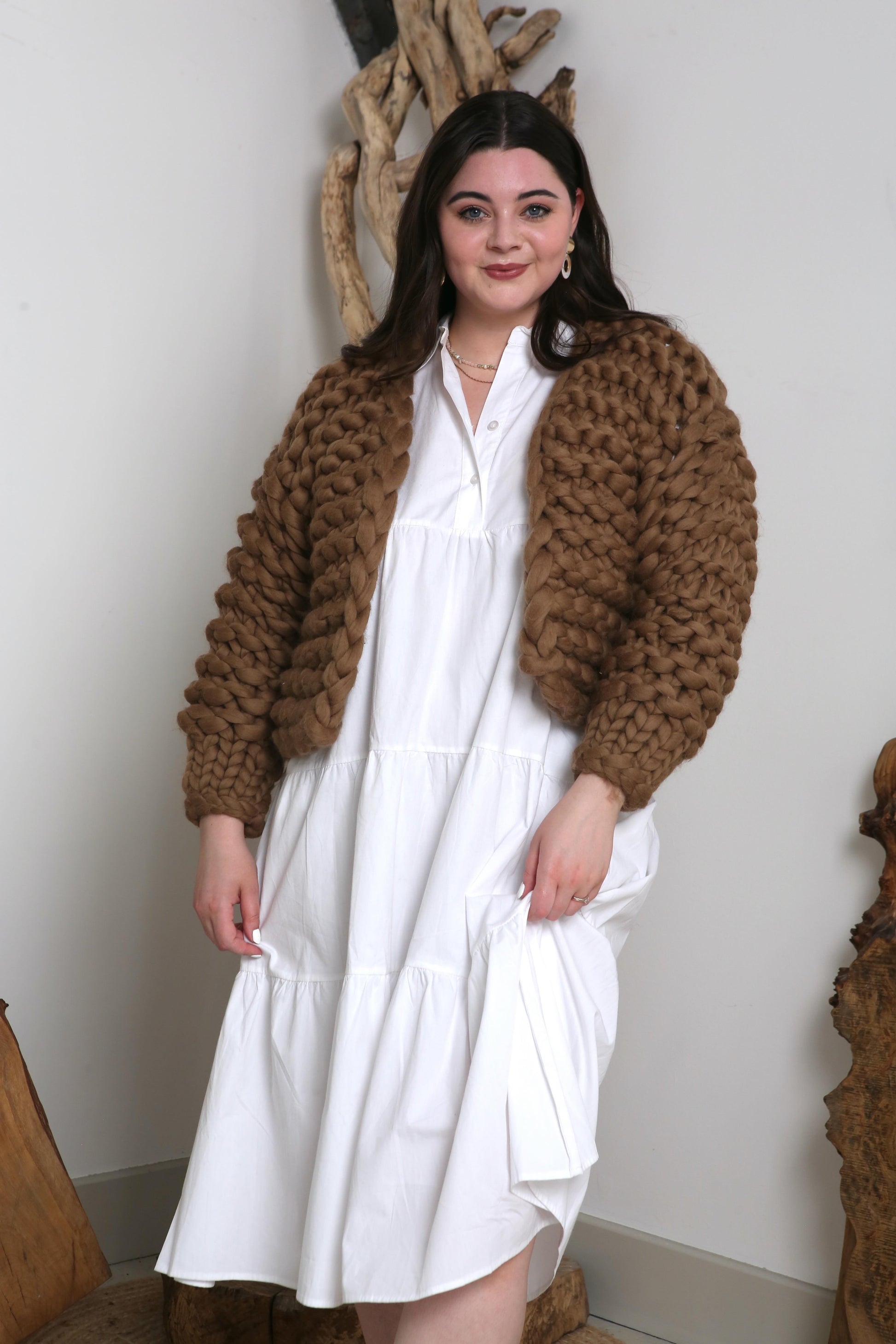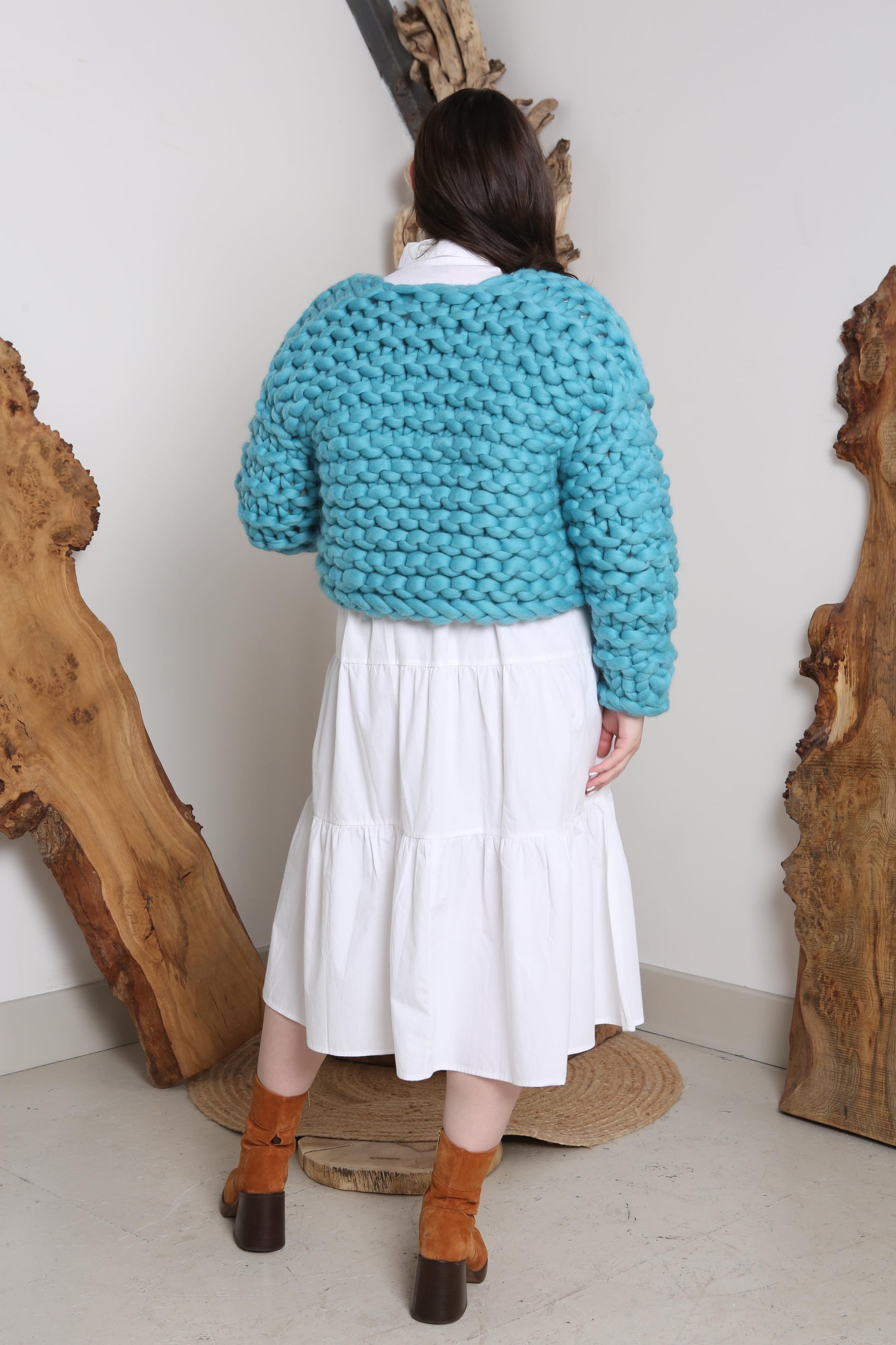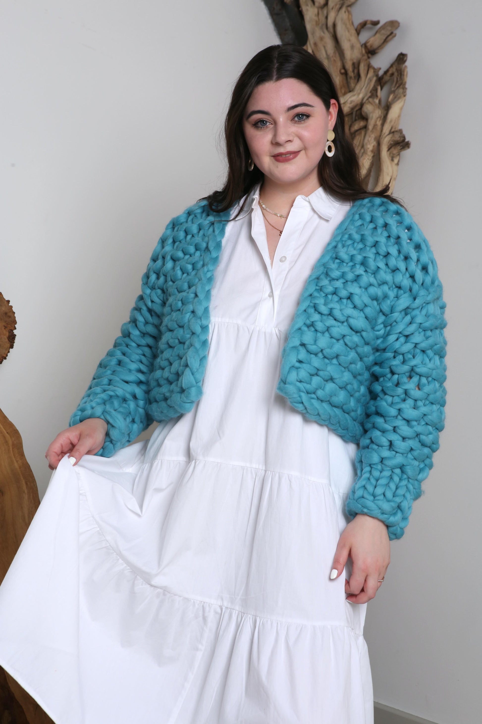 Introducing the DesignerFriday Chunky Knit Cardigan, a new addition to our luxurious collection of chunky knitted cardigans. This cardigan is more than just a piece of clothing, it's a recognition to Indian knitting traditions, where skills have been lovingly passed down through generations of women artisans.